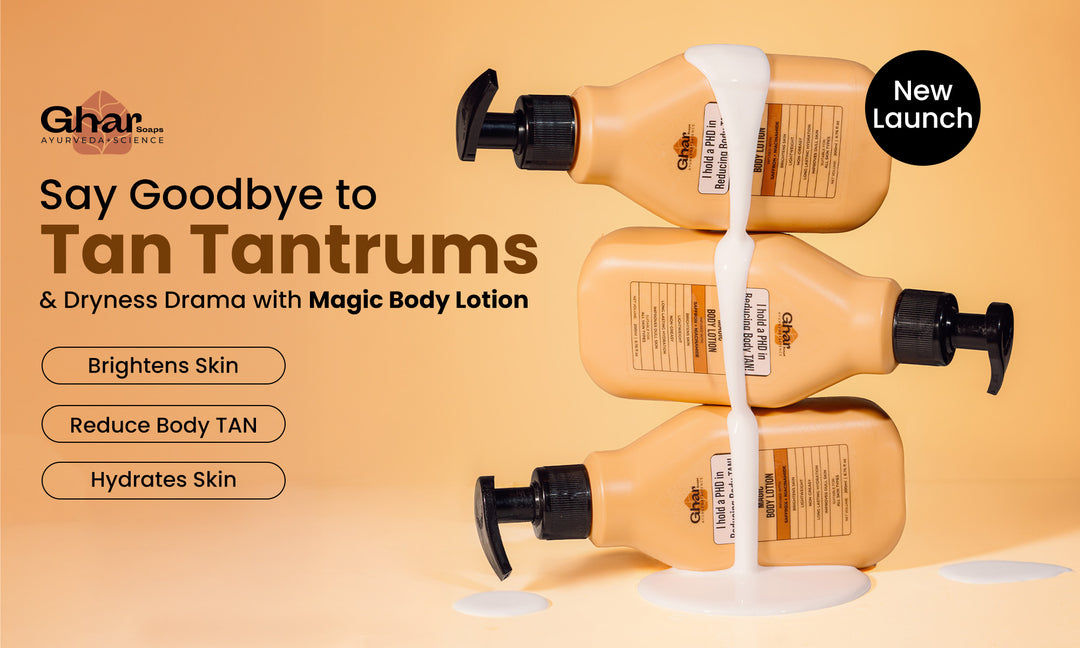 Introducing Magic Body Lotion, infused with saffron and niacinamide to reduce tan and hydrate your skin, with a non-sticky, lightweight, and quick-absorbing formula.