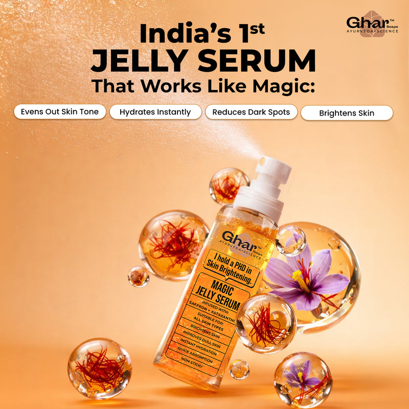 Powered with Saffron, Astaxanthin & Niacinamide , Magic Jelly Serum helps reduce dark spots and uneven skin tone, while delivering quick-absorbing, lightweight hydration.