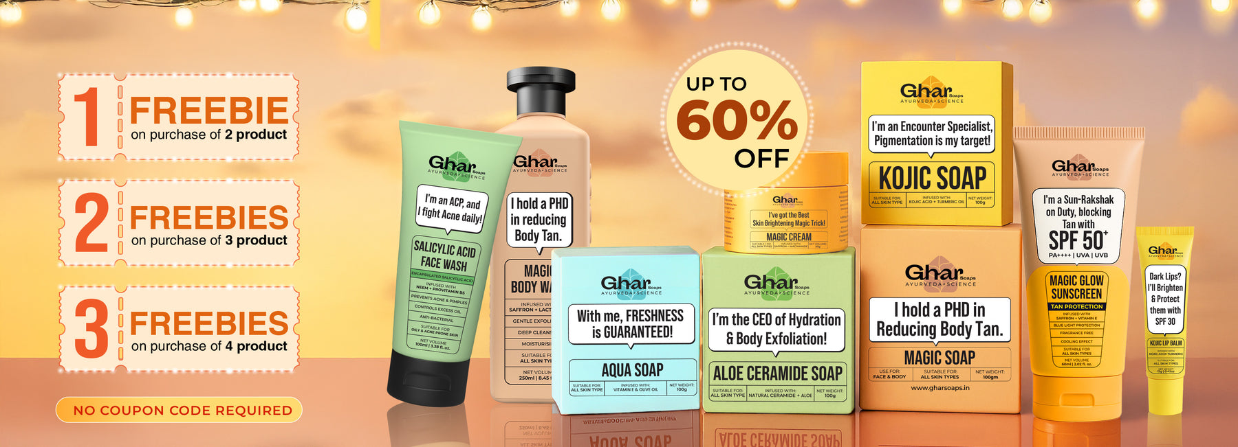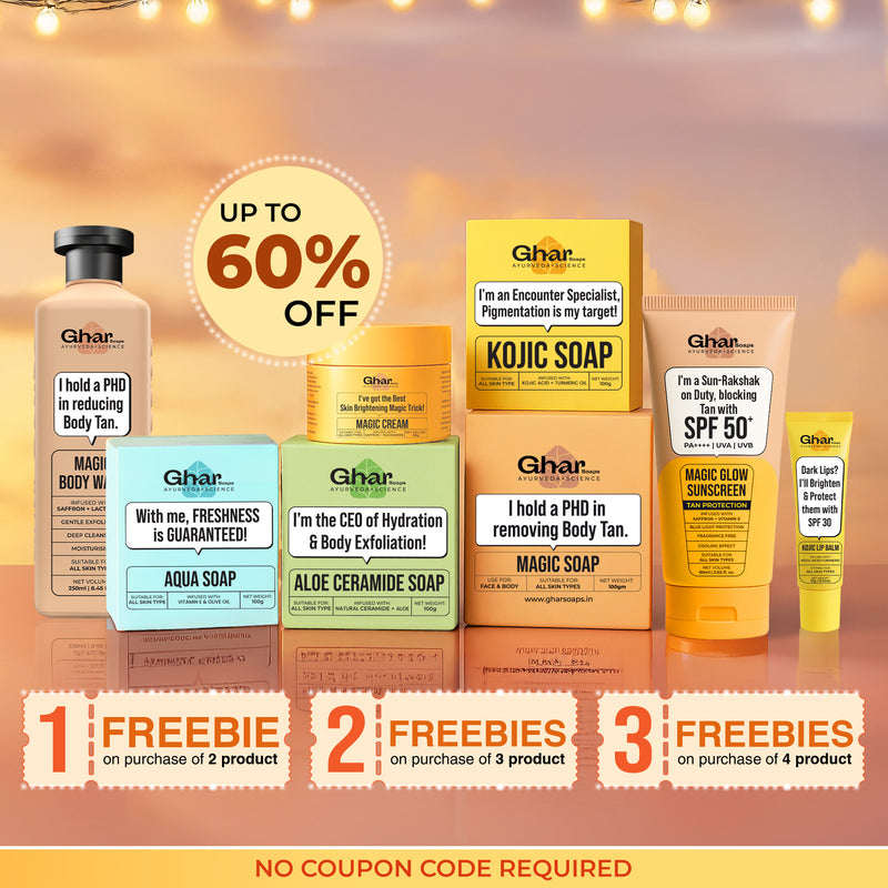 The Tan Protection Kit is your ticket to tan-free, glowing skin. It includes Magic Soap to reduce tan, Magic Cream for a long-lasting glow, and Magic Glow Sunscreen with SPF 50+ & PA++++ to shield you from sun damage.