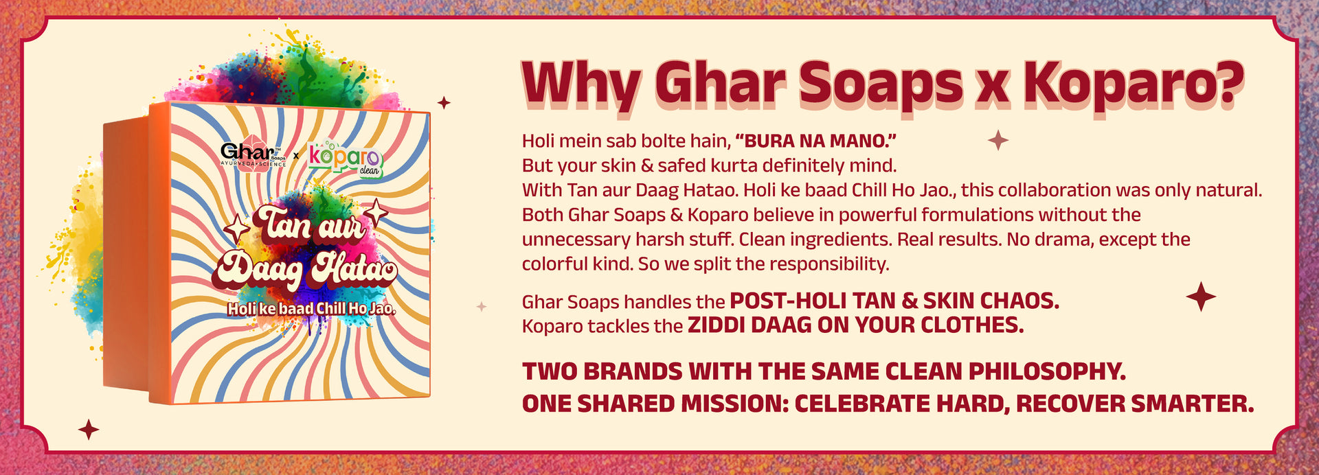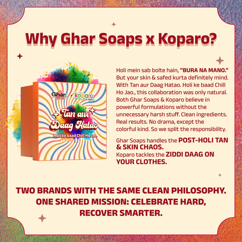 Ghar Soaps, in collaboration with Koparo, won’t let colours stay on your skin or clothes for long.