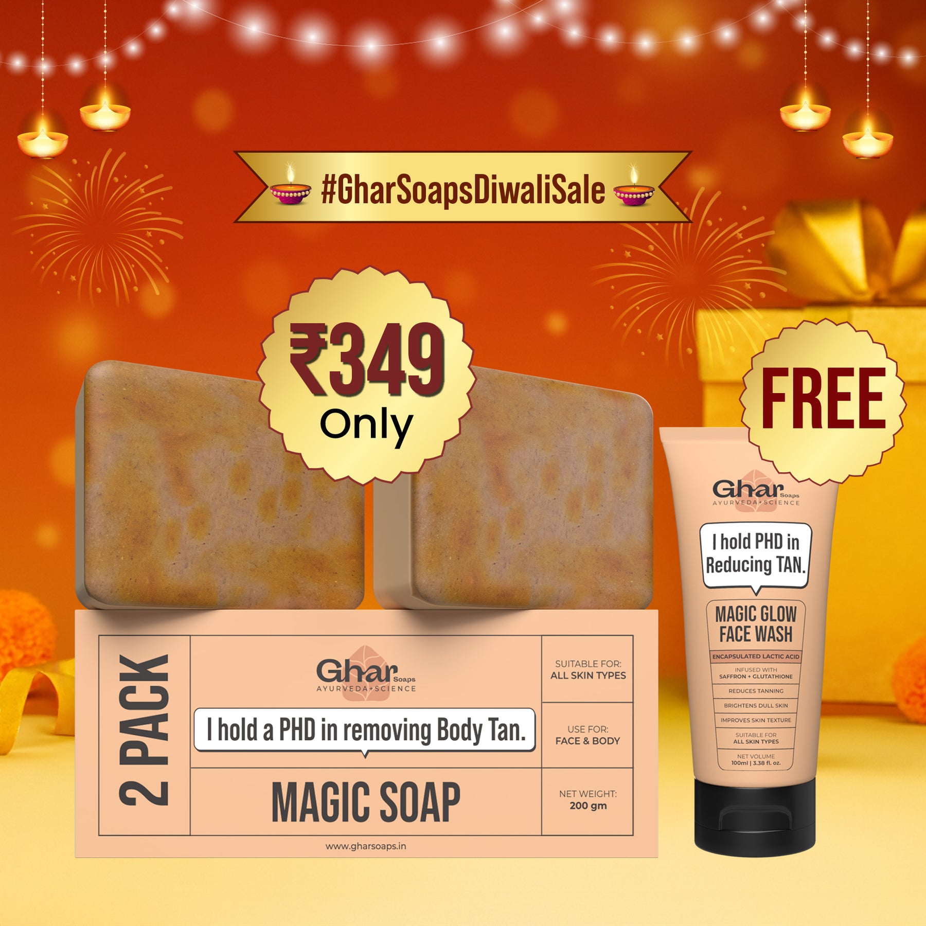 Hey Beautiful! 🌟 I’m the Magic Glow Combo, here to give your skin the glow it’s been craving! From head to toe, I’ll work my magic – my Magic Soap will gently fade away tan and brighten your skin, while my Magic Face Wash (yes, I’m giving you a FREE 30ml pack 😉) will refresh and deeply cleanse your face. Together, we’ll leave you looking radiant and feeling amazing every single day! ✨