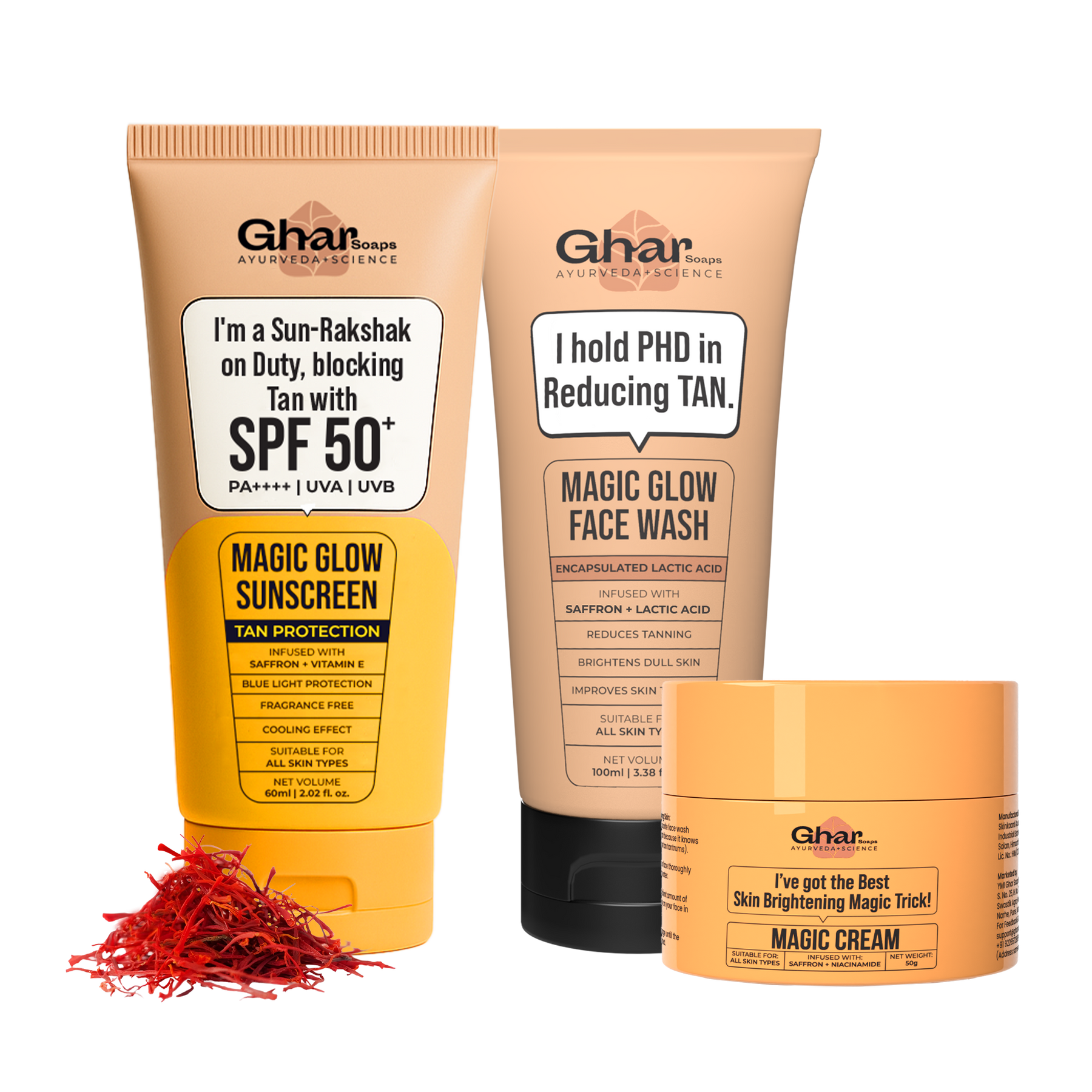 Our Magic Glow Sunscreen Cream seamlessly blend with your skin without leaving a patchy white cast.