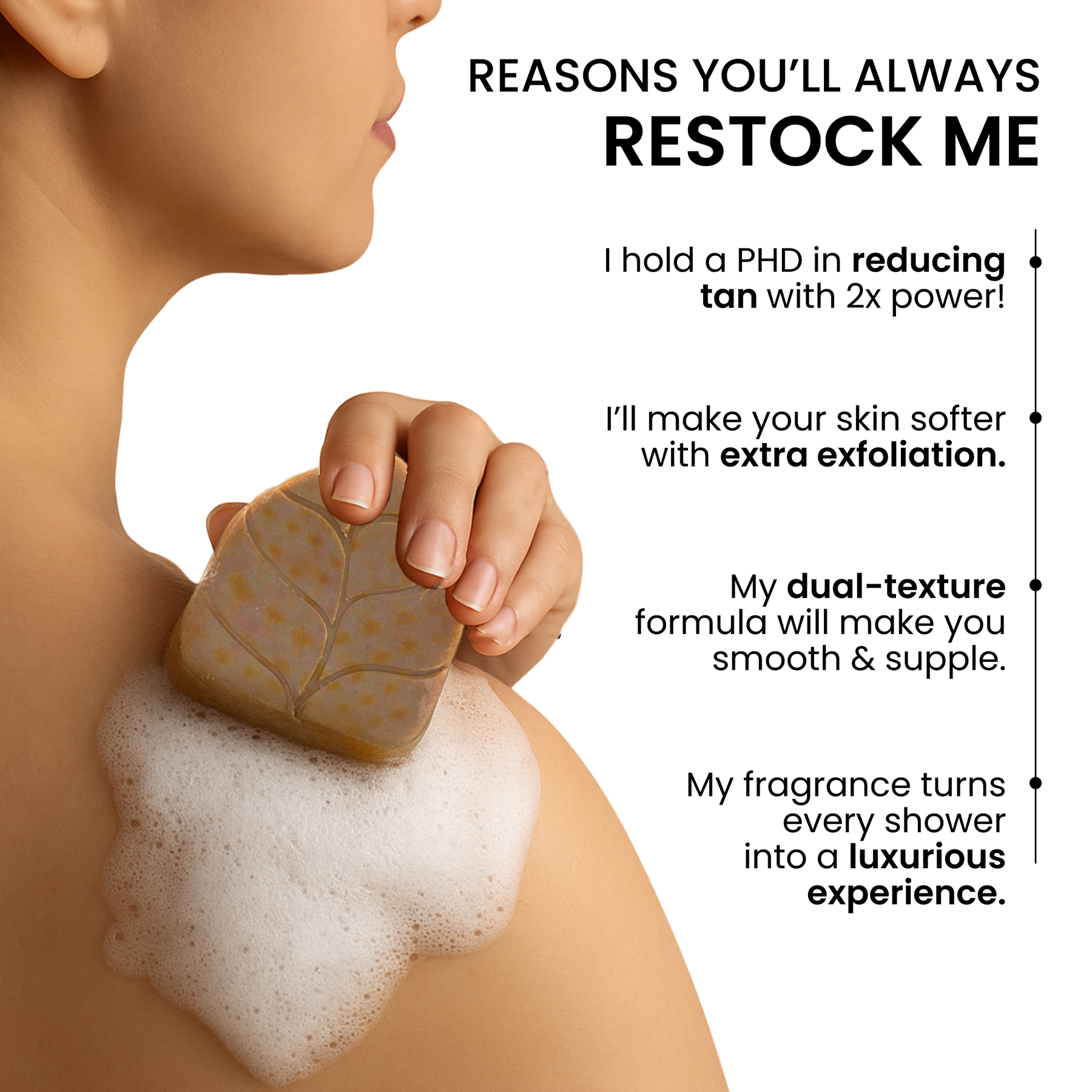 Typically, exfoliating your skin once or twice a week is enough. But, our magic anti-tan soap gives mild exfoliating action and it has natural ingredients. Therefore, you can use it everyday. It is going to help remove dead skin cells and tan build up without drying your skin.